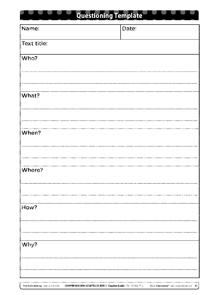 Questioning in The Comprehension Strategies Box