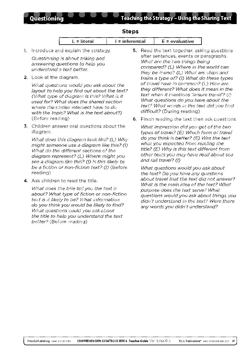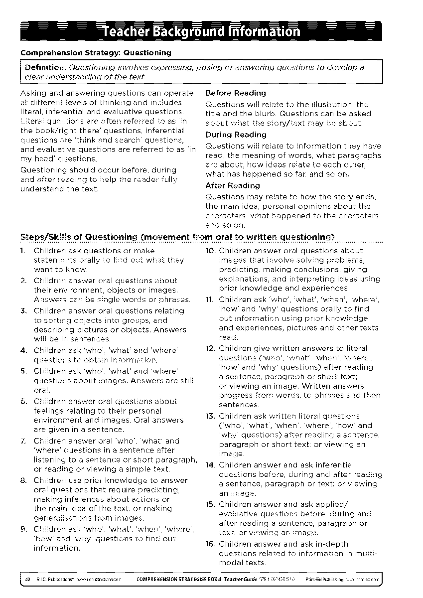 Teachers can develop children’s questioning skills and therefore their ability to comprehend texts in a variety of ways.